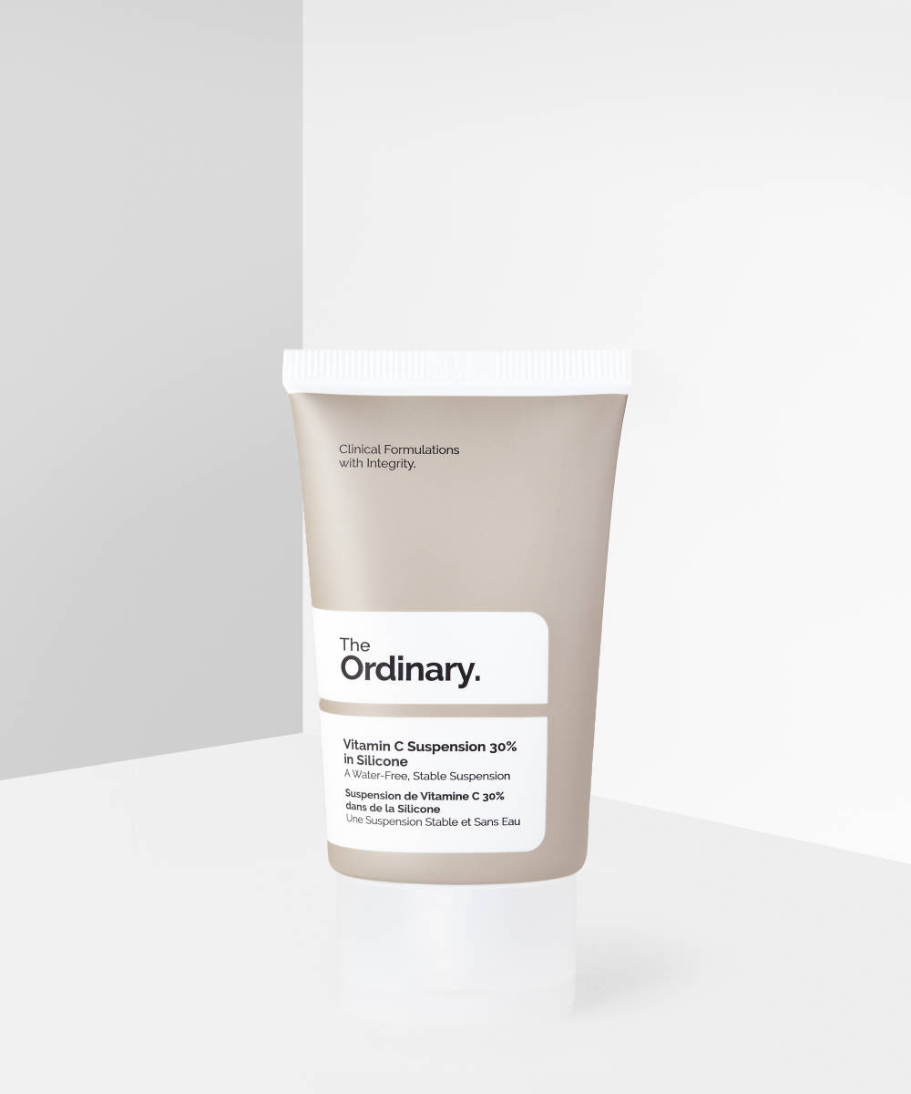 The Ordinary Vitamin C Suspension 30% in Silicone 30 – Ml helps visibly brighten skin and reduce signs of ageing such as discolouration, fine lines and dark circles. The pure form of L-Ascorbic acid acts as an effective antioxidant when applied topically. This waterless formula is composed of 30% pure L-Ascorbic acid and very light silicones, creating a smooth feeling on skin. The formula may cause a strong (but non-irritating) sensation during the first 1-2 weeks of use; however, this can be minimized by mixing it with other creams and serums. Apply at night for smoother, brighter and more even skin when you wake up.